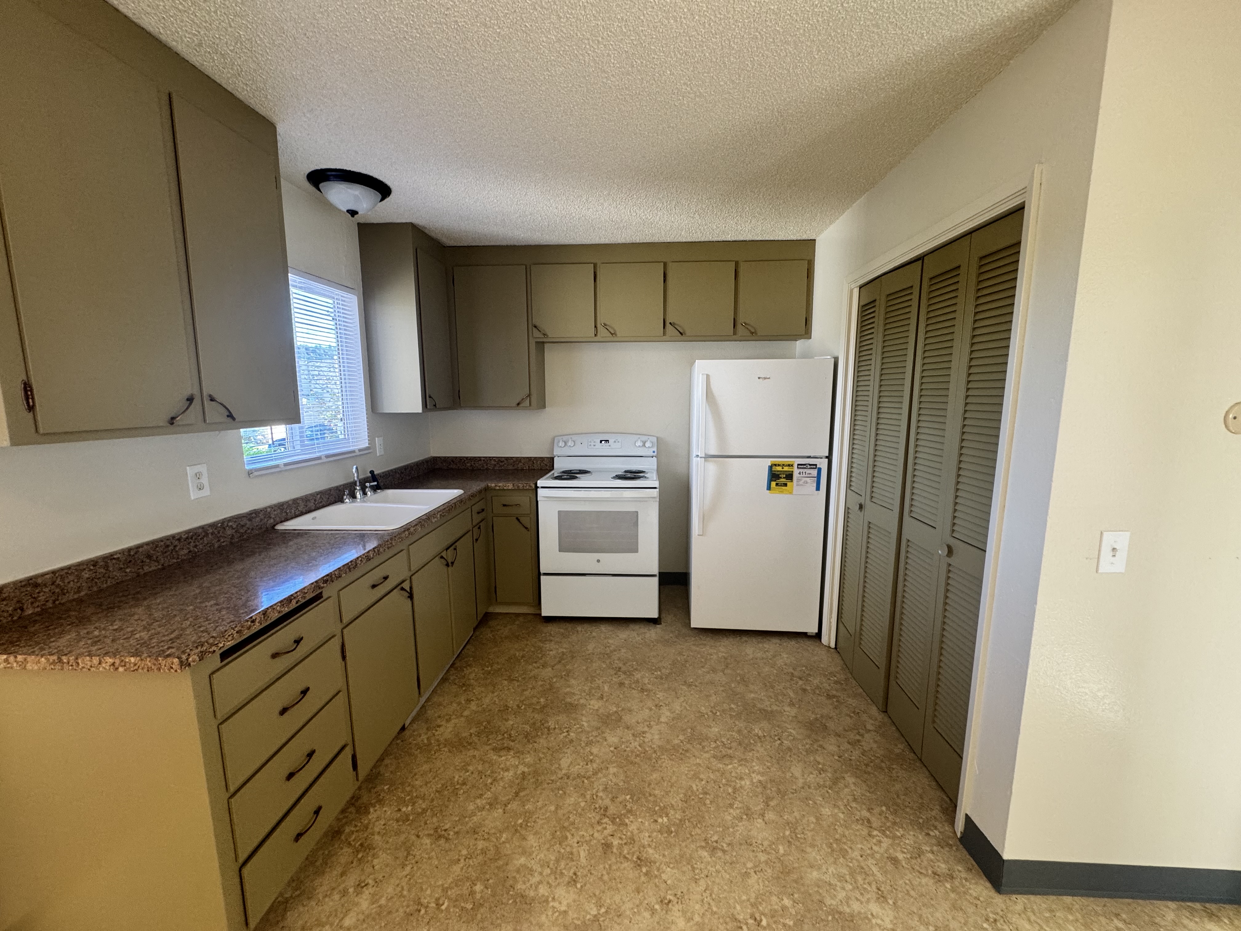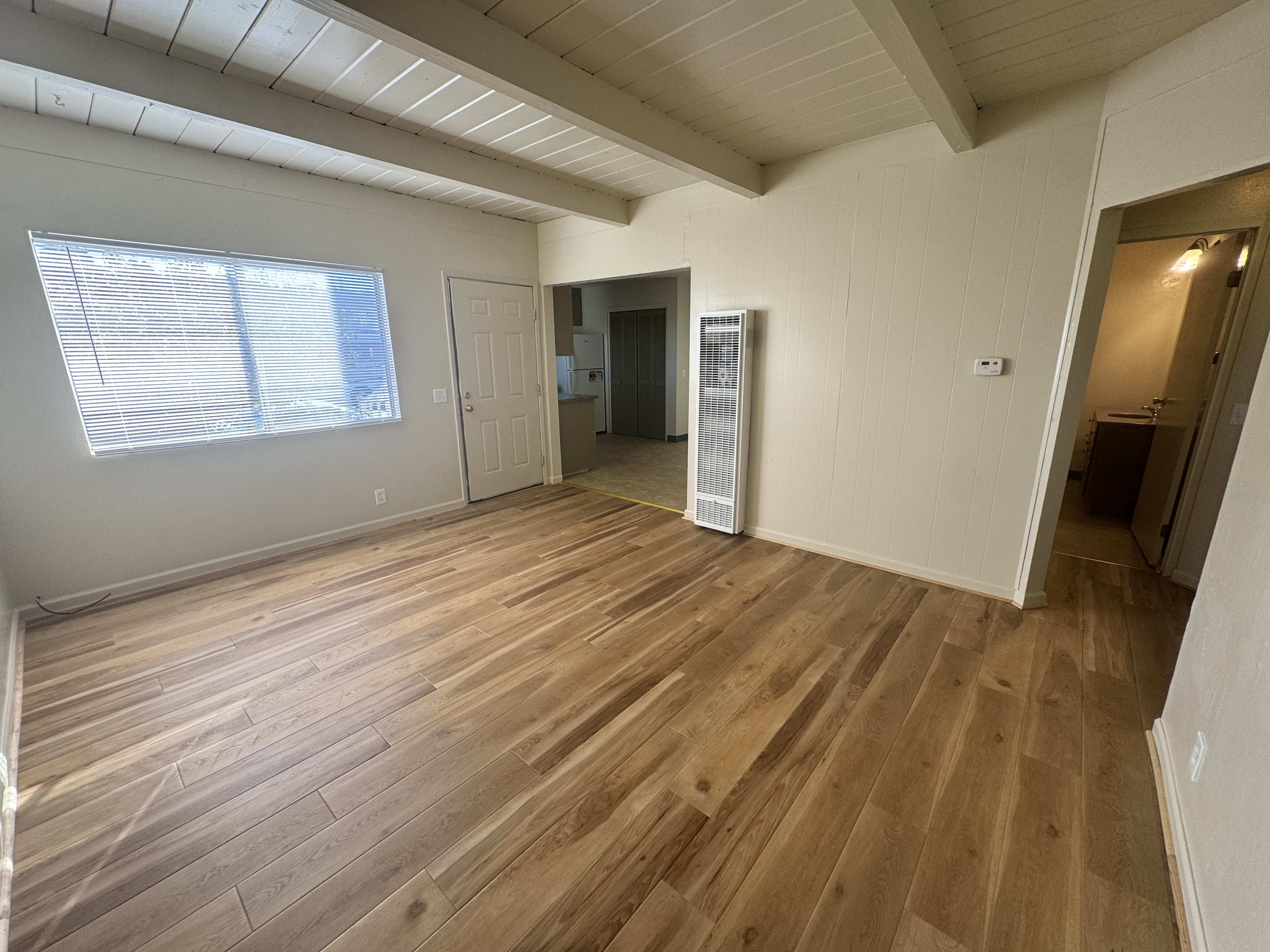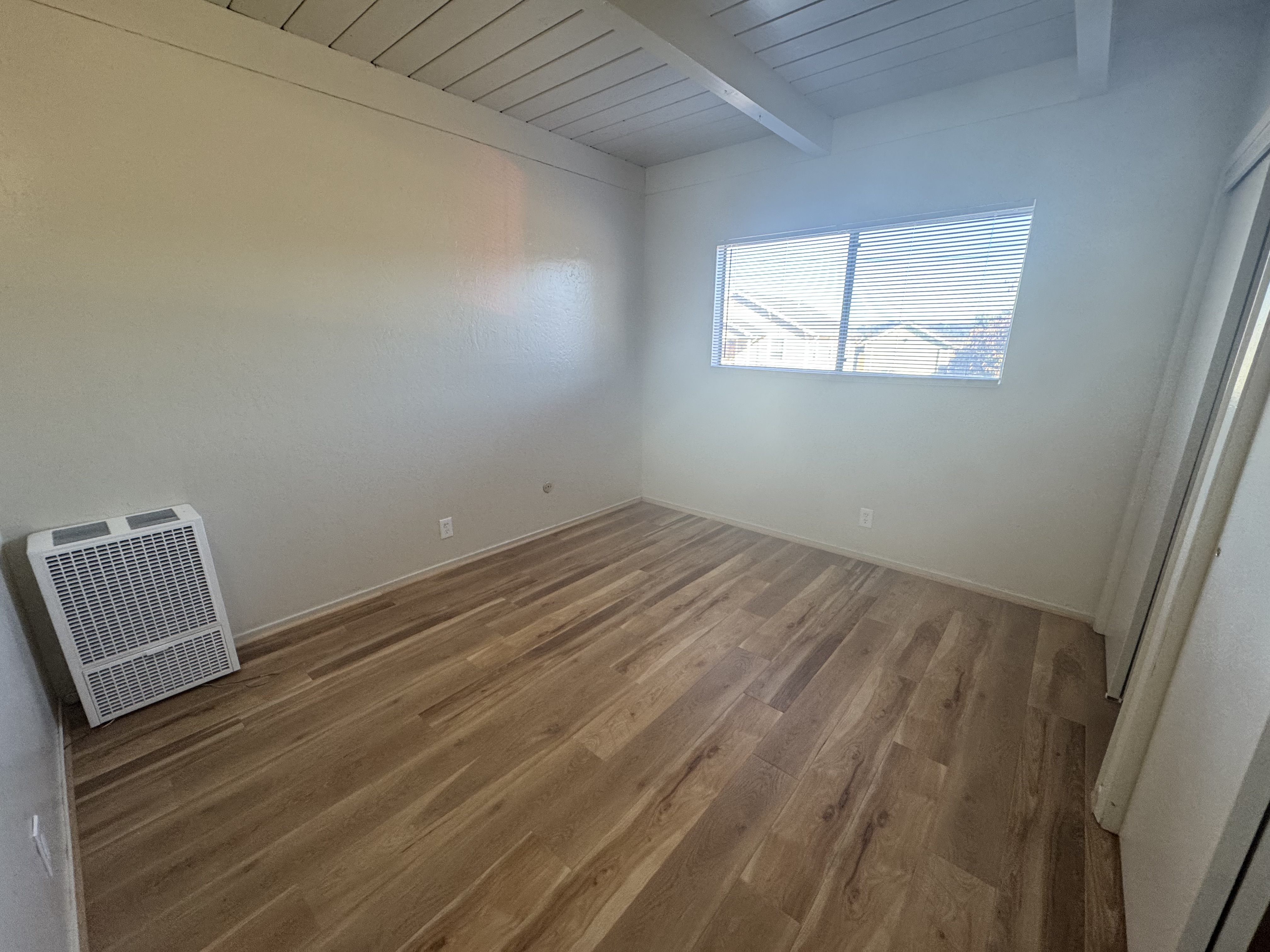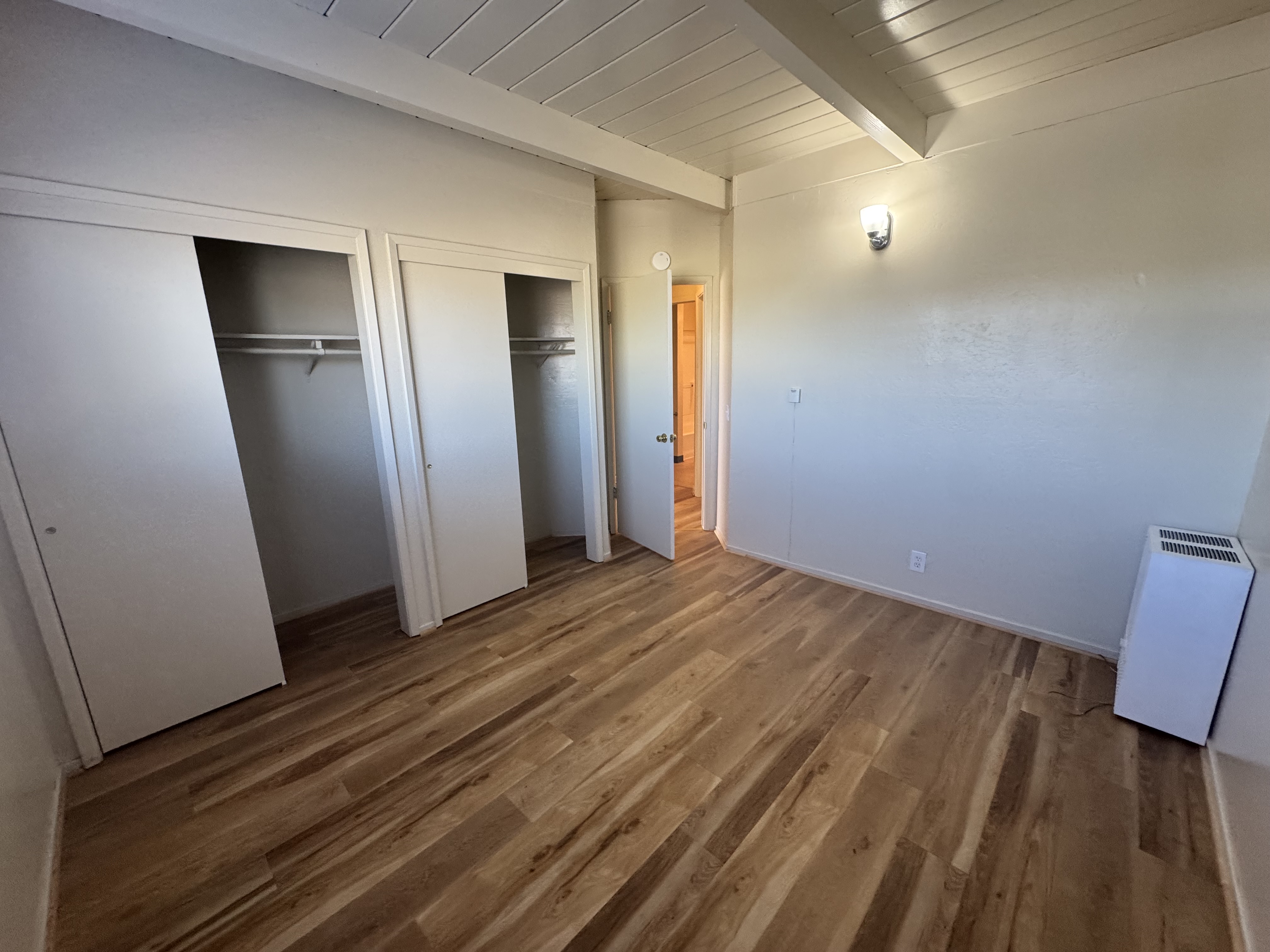 Two bedroom and one bathroom apartment with off-street parking. Spacious unit with large living room, open kitchen with plenty of cabinet space, tow large bedrooms with oversize closets and extra large bathroom with tub shower. Extra linen closet in hallway. New paint, flooring, window coverings and fixtures. On site coin-op laundry. Located close to downtown, shopping, restaurants and within close walking or biking distance to Cal Poly. Water, sewer and garbage paid. No smoking and no pets.