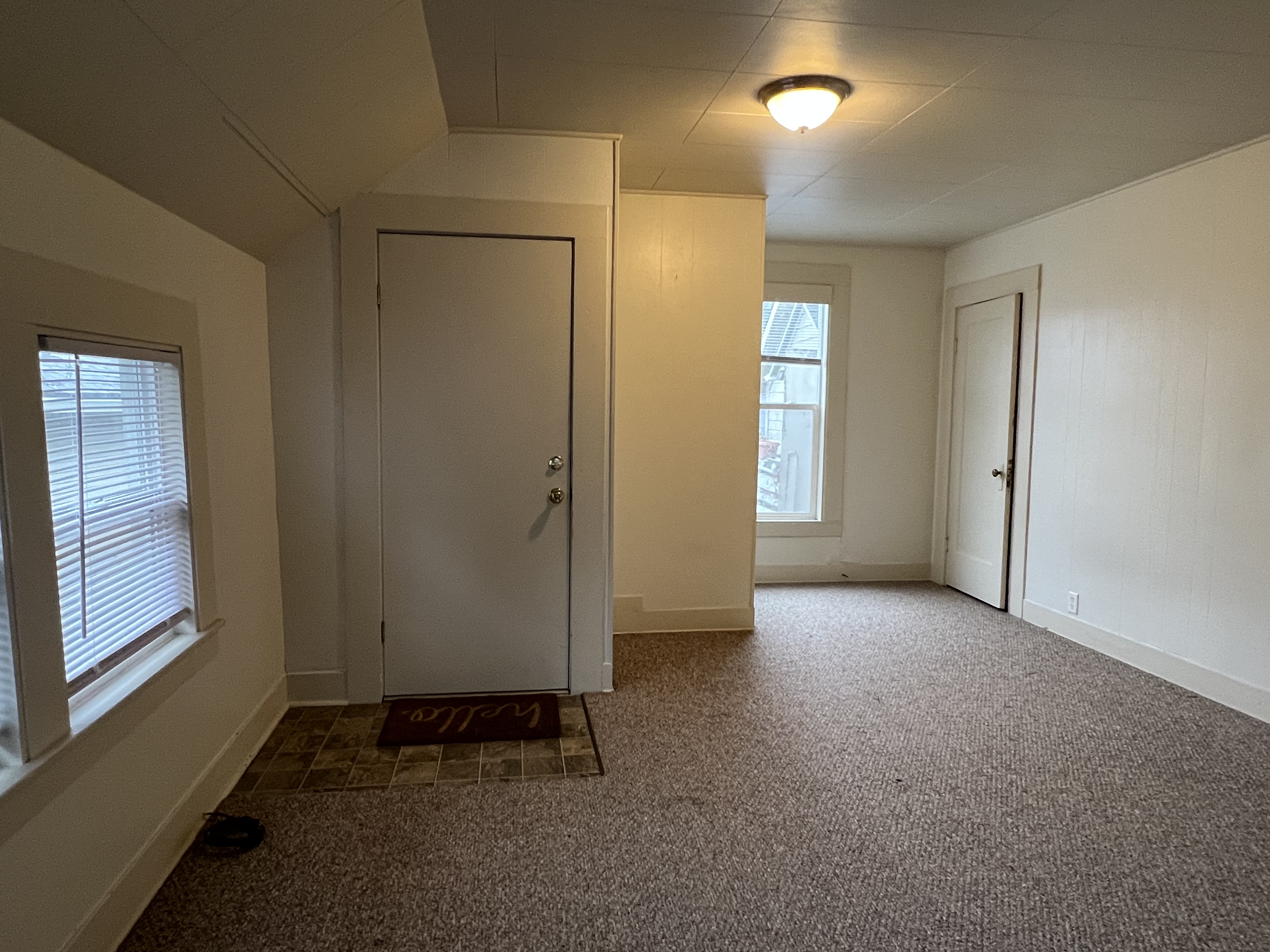 One bedroom and one bathroom apartment with off-street parking. Upstairs unit with large living room, separate kitchen with plenty of storage space, large bedroom with oversize closet and bathroom with tub shower. New paint, with newer flooring, window coverings and fixtures. Located close to laundry, shopping, restaurants, bus line and Highway 101. Water, sewer and garbage paid. No smoking and no pets. One year lease.