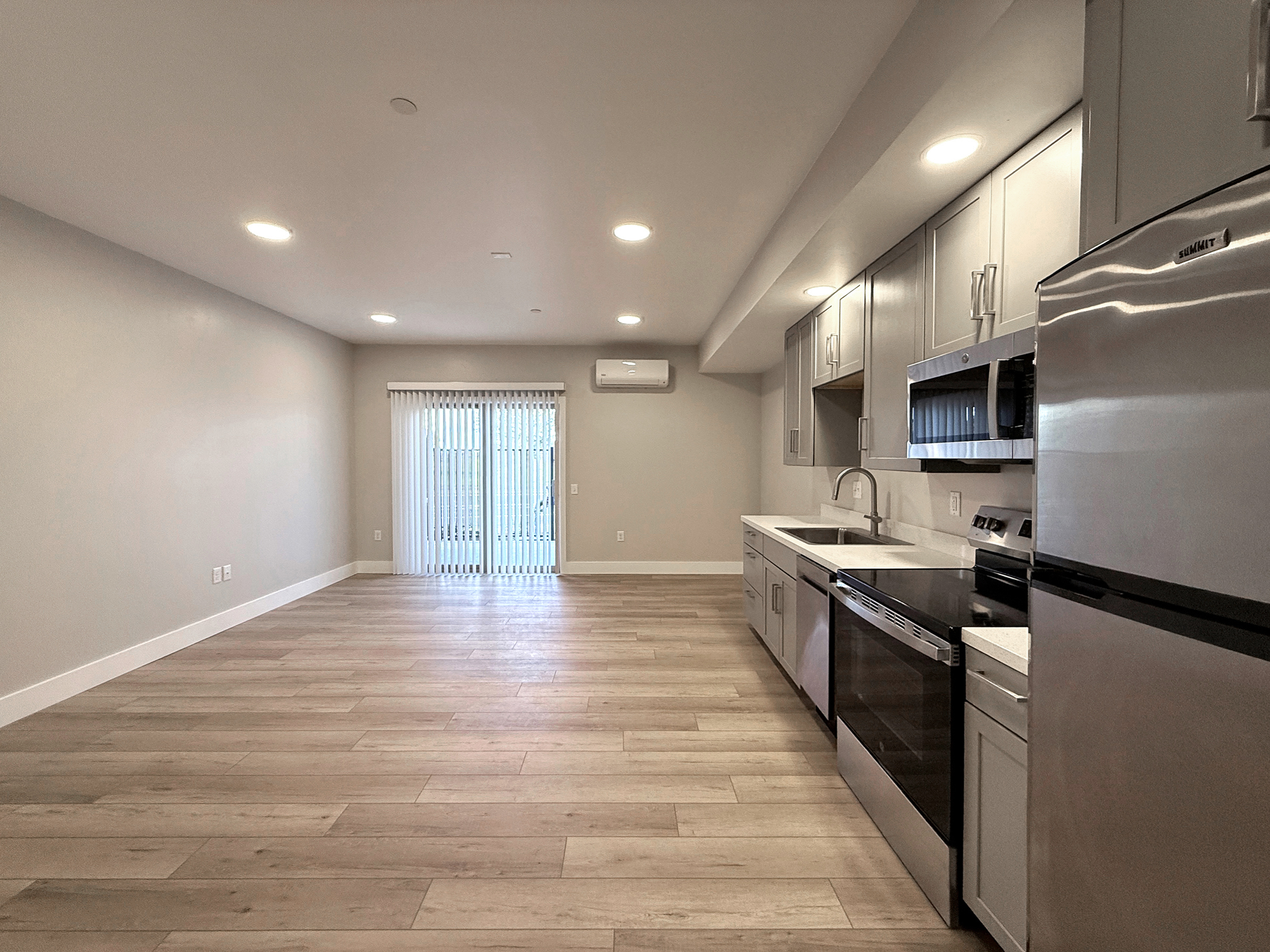 Studio apartment with gated parking. Beautiful newer executive unit with large living space, open kitchen with plenty of cabinet space, all appliances including dishwasher/garbage disposal, oversize closet, large bathroom with oversize stall shower and vanity storage. Many upgrades throughout including semi-private landscaped patio and air conditioning. On site coin-op laundry and secure complex with gated off-street parking. Garbage paid. No smoking and no pets.