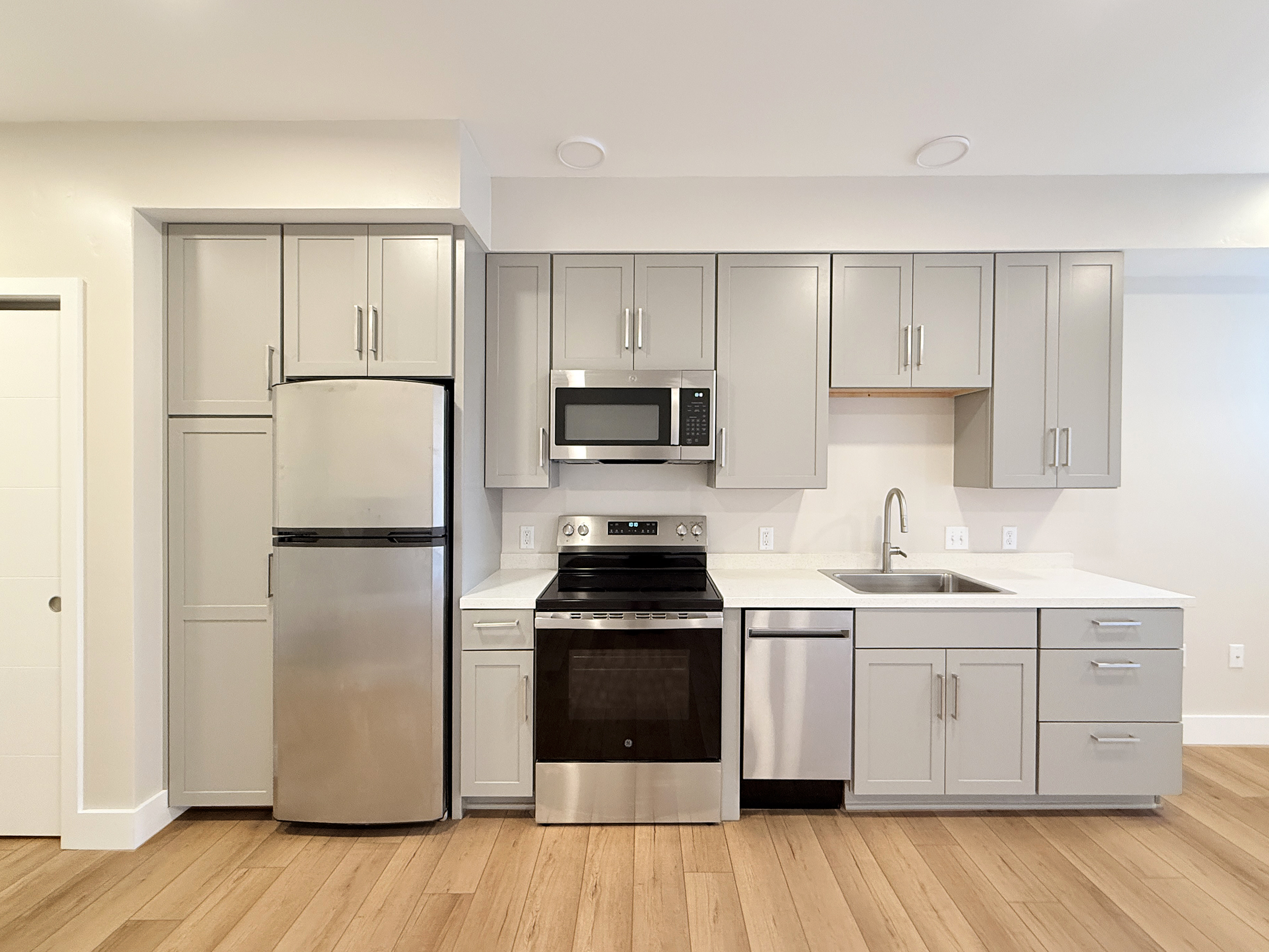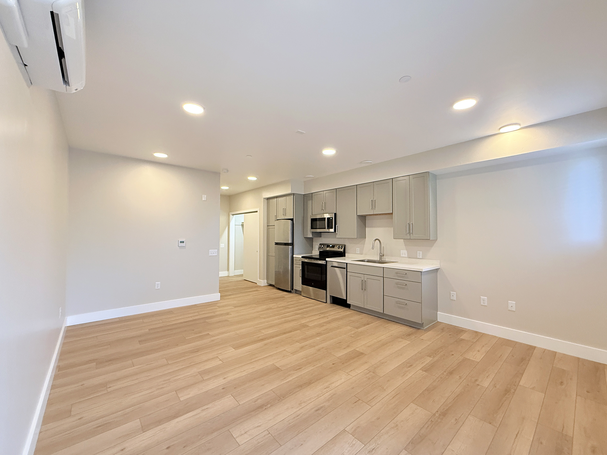 Studio apartment with gated parking. Beautiful newer executive unit with large living space, open kitchen with plenty of cabinet space, all appliances including dishwasher/garbage disposal, oversize closet, large bathroom with oversize stall shower and vanity storage. Many upgrades throughout including semi-private landscaped patio and air conditioning. On site coin-op laundry and secure complex with gated off-street parking. Garbage paid. No smoking and no pets.