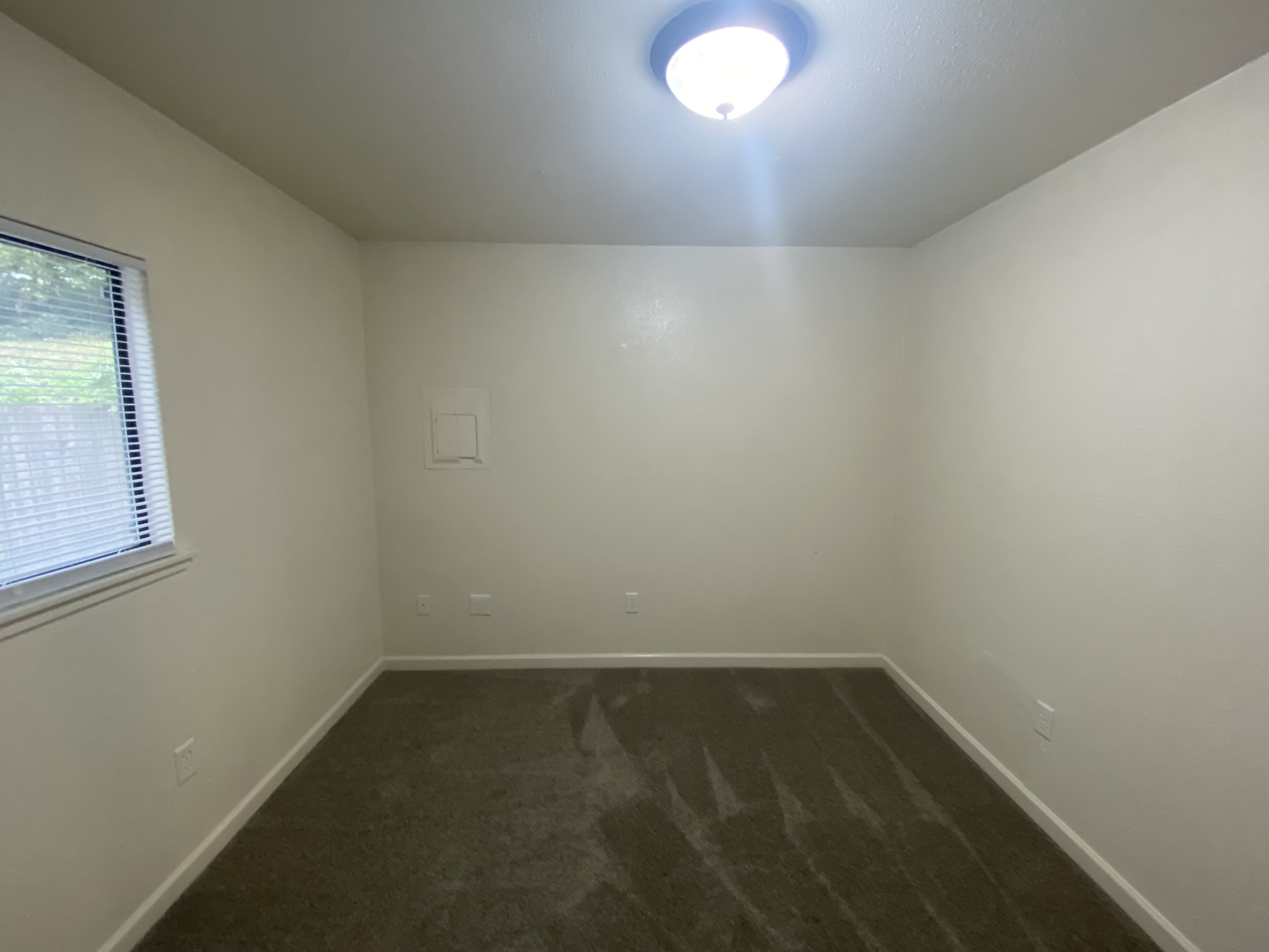 Three bedroom and one bathroom house with off-street parking. Recently remodeled with newer paint, flooring, window coverings and fixtures. Large living room, open kitchen with plenty of cabinet space, three spacious bedrooms with oversize closets and large bathroom with tub shower. Separate laundry room with hook-ups and small deck with beautiful views of the forest. Located close to shopping, restaurants and Cal Poly. Water paid. No smoking. Cat OK